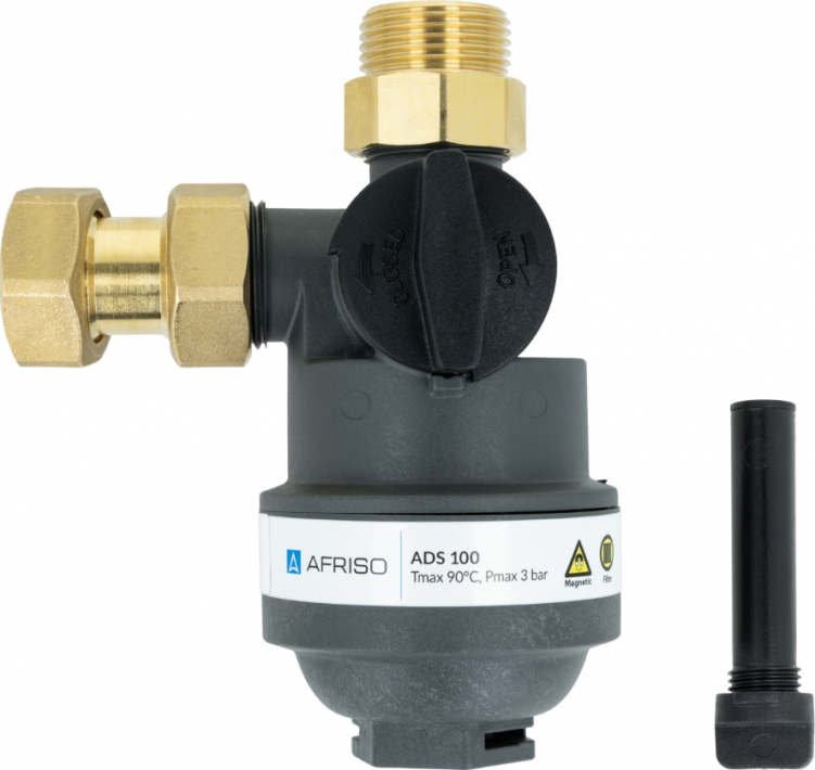 AFRISO Kompaktowy magnetyczny separator zanieczyszczeń ADS 100, przyłącza kątowe G3/4"