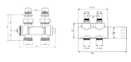 Moduł termostatyczny grzejnikowy przeznaczony do instalacji dwururowej. Podłączenie zaworu od strony instalacji za pomocą złączek typu Eurokonus 3/4", dedykowanych do rur miedzianych, stalowych i rur tworzywowych (wielowarstwowych oraz jednorodnych). Modułowa konstrukcja zaworu (4 w 1) pozwala na jego połączenie z instalacją zarówno od strony podłogi jak i ze ściany.