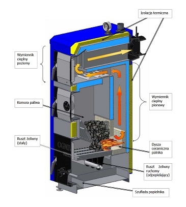 Kocioł grzewczy OGNIWO CLASSIC DS spełnia wymagania normy PN-EN 303-5:2012 dla 5 klasy, oraz programów ochrony środowiska. Wytwarzany w nowoczesnej technologii produkcji z atestowanych materiałów. Konstrukcja kotła oparta jest na wysoce wydajnym wymienniku ciepła. Wykorzystuje technikę dolnego spalania węgla kamiennego zapewniającą ekonomiczne i czyste spalanie paliwa .