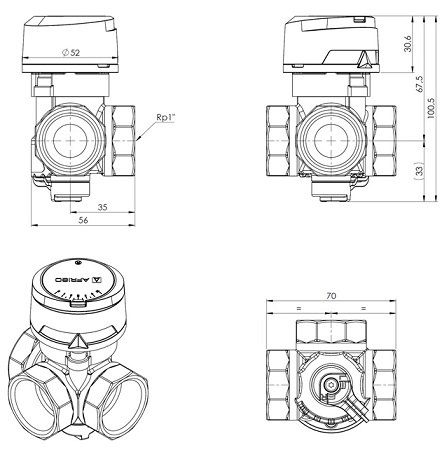 3-drogowy obrotowy zawór mieszający ARV 384 Vario ProClick, DN25, Rp1", Kvs 4,5 - 12