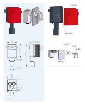 • Korpus syfonu podtynkowego do zabudowy w ścianie, zawierający uchwyty montażowe, korek, śrubę do kasety, obudowę ochronną na czas montażu. Korzyścią jest też swobodny dostęp do kanalizacji po wyjęciu danej kasety.