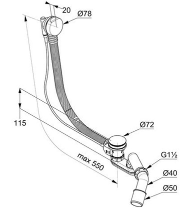 • z elastyczną rurą przelewową