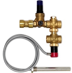 Zabezpieczenie termiczne 5067 instalacji służy do zabezpieczania kotłów na paliwo stałe w instalacjach grzewczych wyposażonych w zawory termostatyczne zgodnie z Normą Polską PN-EN303-5. Szczególnie polecane jest do kotłów, które nie są wyposażone w wymiennik chłodzący.Zawór zabezpieczenia termicznego 5067 składa się z następujących części: zaworu zwrotnego, reduktora ciśnienia, sterowanego termicznie zaworu napełniającego i wyrzutowego, czujnika temperatury z kapilarą.